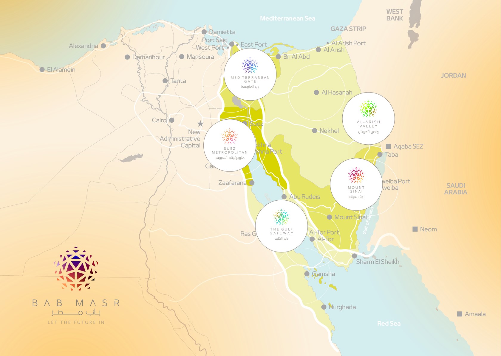 Bab Masr aims to position Egypt as a global epicentre for the next century, highlighting the development potential of the north-eastern region and driving economic, tourism, and trade transformation.