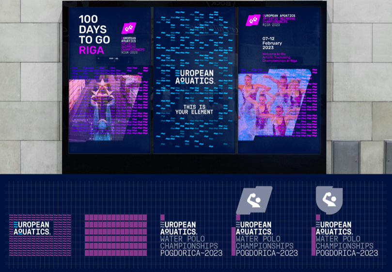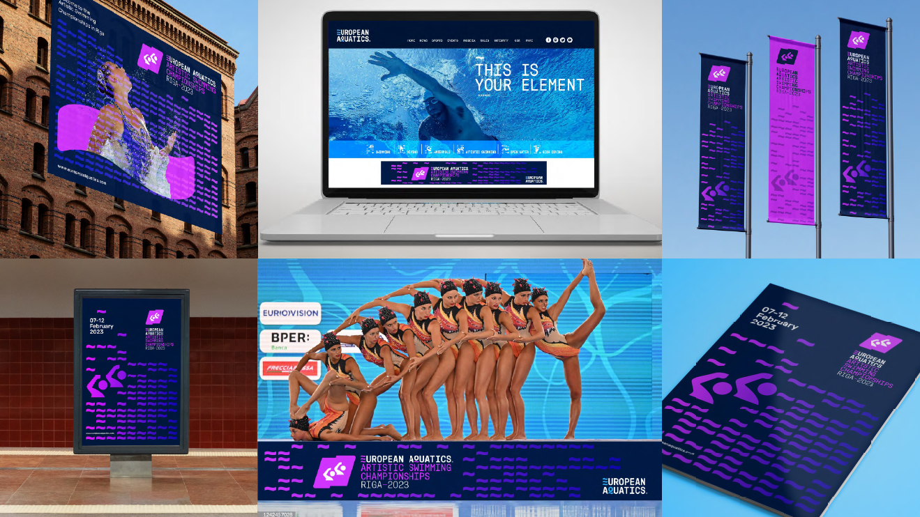 To develop an integrated branding system rooted in the mission, vision, and values of European Aquatics. With water at the core, the new identity merges the two pillars of the brand: competition and way of life.